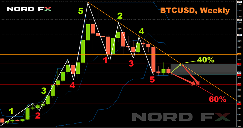হতাশাজনক মনোভাবকে 60% বিশেষজ্ঞ সমর্থন করেছেন যারা অলিন্দের নিচের সীমা ভেঙ্গে বেরনোর এবং BTC/USD জুটির $7,000-7,400-র অঞ্চলে পতনের প্রত্যাশা করছেন। বাকি 40% বিশ্লেষক বিটকয়েনের কোন নড়াচড়ার প্রত্যাশাই করছেন না। তাদের মতে, আগামি সপ্তাহে, উল্লিখিত ক্রিপ্টোকারেন্সি প্রতি 1 কয়েন $8,300-8,700-র শ্রেণিতে কেনাবেচা হবে।