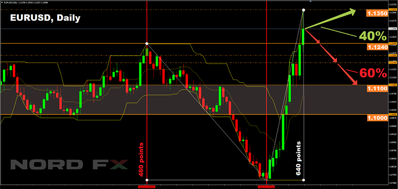 বিশ্লেষকদের পূর্বাভাসগুলোর ক্ষেত্রে, তাদের বেশিরভাগের মতে, করোনা ভাইরাস নিয়ে উদ্ভুত সমস্যার সুরাহ হলে গেলেই, আর্থিক বাজারগুলোর পরিস্থিতিও স্থিতিশীল হবে, এবং EUR/USD জুটি 1.1000-1.1100-এর পরিসরে ফিয়ে আসবে। বিশেষজ্ঞদের 60% সাপ্তাহিক পরিপ্রেক্ষিতে এবং 70% মাসিক পরিপ্রেক্ষিতে আর 80% মধ্য-মেয়াদি পরিপ্রেক্ষিতে এই ফলাফলের পক্ষে রায় দিয়েছেন। নিটকবর্তী শক্তিশালী অবলম্বনগুলো হল 1.1240 এবং 1.1175।