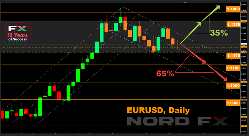 সেজন্য, জোড়াটির আসন্ন সপ্তাহে ব্যবহার সম্পর্কে বিশ্লেষকদের মতামত প্রায় সমানভাবে বিভাজিত : 30 শতাংশ জোড়াটির বিকাশের পক্ষে, 40 শতাংশ এর পতনের দিকে এবং 30 শতাংশ এর সাইড ট্রেন্ডের পক্ষে। একই সময়ে, সাপোর্ট ও রেজিস্ট্যান্সের প্রধান স্তর হল চ্যানেলের সীমানাগুলি যা গত দুই সপ্তাহে গিয়েছিল - 1.1170 এবং 1.1350।