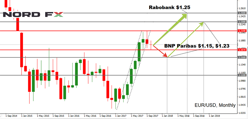 According to statistics, more than 85% of transactions in financial markets are made with the participation of the US dollar, and about 30%, with the participation of the Euro. So, what do experts expect from the EUR/USD at the end of 2017 and in 2018?