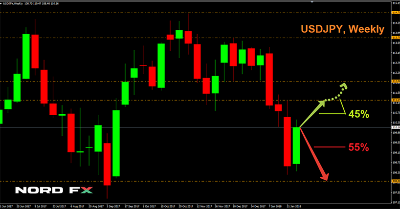If you look at the chart, you can see that during the first half of the week the pair had been trying to overcome the resistance at 109.20, succeeding in doing so on Wednesday 31 January. The pair reached the week’s maximum of 110.47 on Friday; - USD/CHF. Here, the opinions of experts were divided 50/50. The pair spent the whole week being similarly ambivalent: at first it grew a little, then fell slightly, then went up again, and then fell a little. As a result, the decline over five trading days was as small as 25 points (0.9335).