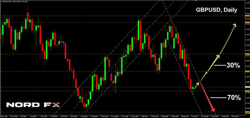 The goal of the bears is the year's low of 1.1300, which was fixed on August 15. The pair is unlikely to go below this mark before the mid-term elections in the US on November 6 and the Fed meeting on November 8. Although one cannot exclude any attempts to break through this support; - GBP/USD. The pound has already reached the September lows in its fall, the next goal is the 2018 lowest point, 1.2660. And 70% of experts do not see serious obstacles to achieve it.