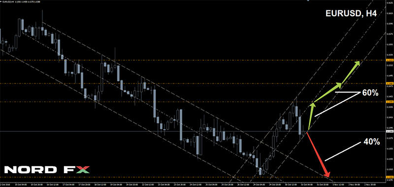 The joy of the bulls was short-lived. The market met November with growing thirst for risky investments, which was supplemented by news of progress in the Brexit negotiations. As a result, the pair flew up to the height of 1.1455, after which everyone froze in anticipation of data on the American labor market, which, as we expected, somewhat strengthened the dollar. Thus, the number of new jobs created outside the agricultural sector (NFP) more than doubled (from 118K to 250K), which allowed the dollar to win back about 65 points. As a result, the pair completed the week in the same place where it began, in the zone 1.1390; - GBP/USD. As the experts expected, the British currency fell in the first half of the week, trying to reach the 2018 low, 1.2660. However, n the November start was turning for this pair as well. On the background of the news on possible signing of an agreement with the EU on Brexit soon, the pound showed an impressive growth, soaring by 340 points. The pair finished the week at 1.2960, in the zone which can be conditionally defined as the Pivot Point of the last three months;