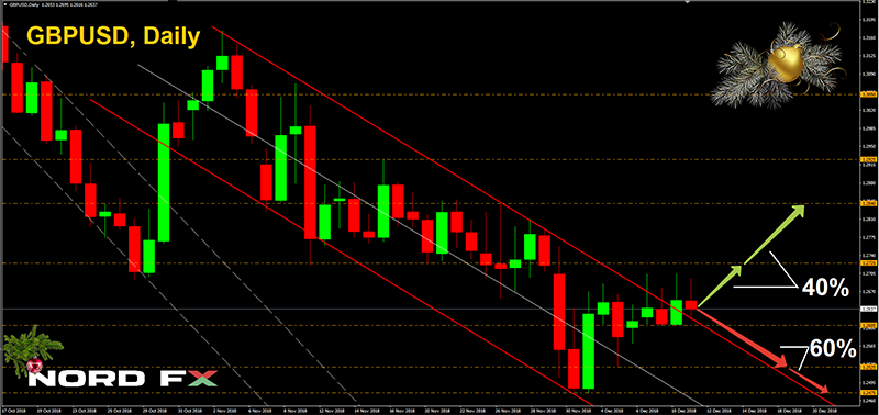 As for the results of the week, after the release on Friday, December 21, of a whole package of data on the US economy, the pair returned to the central zone of the eight-month side channel and stopped at 1.1370; - GBP/USD. As expected, neither the economic data published on Wednesday nor the decisions of the Bank of England on Thursday presented any surprises. Back on Tuesday, December 18, the pair moved to lateral movement in channel 1.2605-1.2705, where it remained until the end of the week, having met its finish at 1.2630;