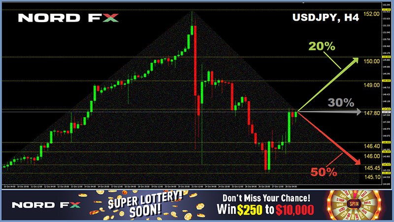 "Unless the BoJ moves to a less dovish stance, foreign exchange intervention remains the most viable option," ING adds. But, apparently, BoJ is not going to tighten its monetary policy. The regulator remained true to itself at its last meeting last Friday, October 28 and kept the interest rate at a negative, ultra-dove level of -0.1%. So now the pair's dynamics depends on whether the BoJ has enough money to intervene to withstand a rise in rates by the US Federal Reserve.