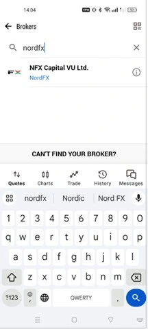 Open the app, click on 'Add Broker', search for 'NordFX', and select it.