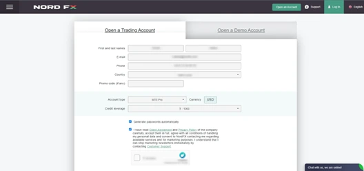 1. Access the NordFX Website