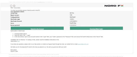 Once your account is created, NordFX will send an email containing your login credentials for MT5.