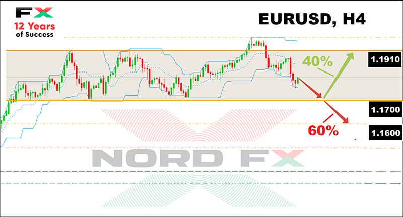 ในวันนี้ นักวิเคราะห์ส่วนใหญ่ยังคงเลือกข้างดอลลาร์ 60% เชื่อว่าคู่ EUR/USD จะสามารถตัดทะลุแนวรับที่ 1.1700 และตกลงไปอย่างน้อยอีก 100 จุด ส่วน 40% ที่เหลือมองว่า ราคาจะยังคงเคลื่อนที่ในกรอบ 1.1700-1.1910 ซึ่งสอดคล้องกับการวิเคราะห์กราฟในกรอบ D1
