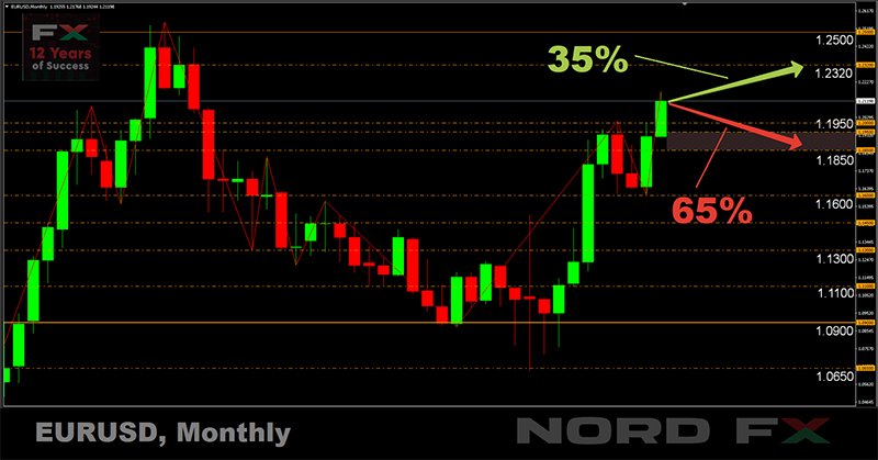 ณ ขณะนี้ การวิเคราะห์กราฟบนกรอบ H4 อินดิเคเตอร์เทรนด์ 90% และออสซิลเลเตอร์ 75% บนกรอบ H4 และ D1 ให้สัญญาณสีเขียว อย่างไรก็ตาม ออสซิลเลเตอร์ 25% ที่เหลือให้สัญญาณชัดเจนแล้วว่า ราคาอยู่ในภาวะ overbought โดยคาดว่าจะปรับลงมาที่โซน 1.1850-1.1950 ตามความเห็นของผู้เชี่ยวชาญ (65%) และได้รับการสนับสนุนโดยการวิเคราะห์กราฟในกรอบ D1 โดยมีแนวรับที่ใกล้ที่สุดคือ 1.2000 และระดับแนวต้าน ได้แก่ 1.2175, 1.2200, 1.2260 และ 1.2320