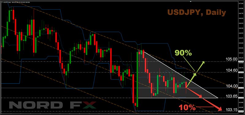 แต่คำคาดการณ์โดยเฉลี่ยของผู้เชี่ยวชาญยังคงแตกต่างไปจากอินดิเคเตอร์: ในที่นี้ 90% สนับสนุนโดยการวิเคราะห์กราฟบน D1 เลือกฝั่งดอลลาร์ และชี้ว่าราคาคู่นี้จะขยับขึ้นในตอนแรกไปที่กรอบด้านบนของช่องนี้ที่บริเวณ 104.60 จะตัดทะลุระดับดังกล่าว และขึ้นไปทดสอบ 105.00 แต่ก็เป็นไปได้ที่ก่อนจะขึ้นปีใหม่ ทั้งตลาดหมีและกระทิงจะไม่มีการเคลื่อนที่ที่หวือหวาอะไร และราคาจะยังคงขยับในทางด้านข้างต่อไปที่บริเวณ 104.00