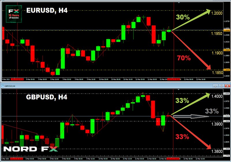 ความเห็นของผู้เชี่ยวชาญแบ่งออกเป็นสามกลุ่มเท่า ๆ กันในขณะนี้ หนึ่งในสามรวมถึงการวิเคราะห์กราฟในกรอบ H4 เชื่อว่า ราคาจะรักษาตัวในช่วงการซื้อขายที่ 1.3775-1.4000 และคาดว่าราคาจะขยับขึ้นมายังระดับสูงสุดของวันที่ 24 กุมภาพันธ์ที่ 1.4240 และกลุ่มหนึ่งในสามสุดท้ายรอให้ราคากลับลงมาที่โซน 1.3600 - USD/JPY ควรมีความชัดเจนในช่วงสัปดาห์ข้างหน้านี้ว่า ค่าเงินญี่ปุ่นจะหยุดแนวโน้มขาลงหรือไม่ และจะเกิดขาขึ้นแบบฉับพลันกับ USD/JPY หรือไม่ ปัจจัยที่เป็นตัวกำหนดมีอยู่สามประการ คือ ผลตอบแทนของพันธบัตรรัฐบาลสหรัฐฯ การประชุมของธนาคารเฟดสหรัฐฯ และการประชุมของธนาคารแห่งชาติญี่ปุ่นในวันศุกร์ที่ 19 มีนาคม ซึ่งน่าจะมีผลกำหนดนโยบายธนาคารกลางฯ ในอนาคตอันใกล้