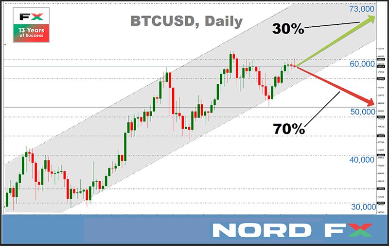 ในที่นี้เราควรอ้างอิงความเห็นของนักวิเคราะห์คริปโตชื่อดัง Willy Woo ผู้เคยกล่าวไว้ว่า เราจะได้เห็นระยะสุดท้ายของการระเบิดพุ่งขึ้นของราคาบิทคอยน์ในปีนี้ แต่มันจะเป็นระยะสุดท้ายของวัฎจักรกระทิงรอบสามปี ขณะนี้ ราคาบิทคอยน์อยู่ที่กรอบด้านล่าง และไม่มีเหตุผลที่จะต้องขาย BTC ของคุณ “คุณคงต้องบ้าแน่ ๆ ถ้าจะขายมันในตอนนี้ ที่กรอบด้านล่าง ตอนนี้บิทคอยน์กำลังถูกซื้อในปริมาณมหาศาล” นักวิเคราะห์เน้นย้ำ โดยอ้างถึงสถิติตลาดคริปโต Coinbase เป็นตัวอย่าง แต่มันก็น่าประหลาดใจที่ท่ามกลางทัศนคติที่ดีในหมู่แฟนตัวยงของคริปโต นักวิเคราะห์ 70% กลับไม่คาดการณ์ว่าราคาจะเติบโต แต่มองว่าราคาจะปรับลดลงมายังระดับ $50,000 ในช่วงเดือนเมษายนนี้