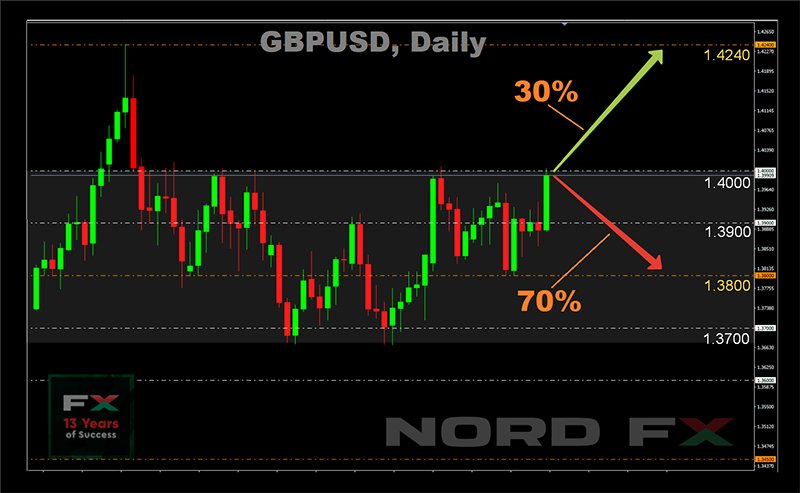 มีผู้เชี่ยวชาญเพียง 30% เท่านั้นที่เชื่อว่าคู่ GBP/USD จะสามารถตัดทะลุกรอบการซื้อขายรอบ 10 สัปดาห์ และขยับขึ้นเหนือ 1.400 ได้สำเร็จ ในกรณีนี้ ราคาจะเร่งตัวขยับไปที่ระดับสูงสุดของวันที่ 24 กุมภาพันธ์ที่ 1.4240 และระดับแนวต้านจะอยู่ที่ 1.4085 และ 1.4180