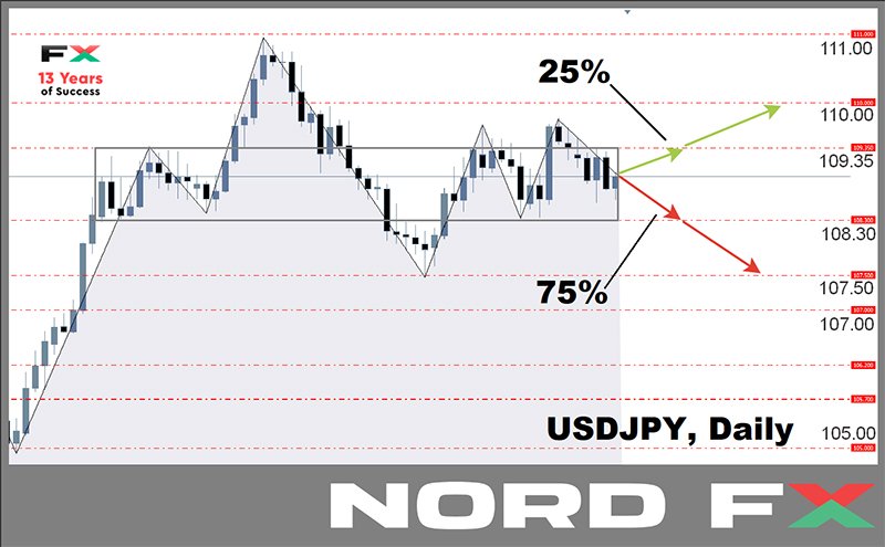 เมื่อวันศุกร์ในช่วงตลาดอเมริกัน สถิติการเติบโตของผลตอบแทนพันธบัตรและดัชนี IHS Markit ภาคบริการของสหรัฐฯ ส่งผลบังคับให้ฝั่งกระทิงถอยหลังอีกครั้ง และราคาคู่นี้ก็ปิดตลาดรอบห้าวันทำการที่ 1.4153 - USD/JPY ผู้เชี่ยวชาญส่วนใหญ่เข้าข้างตลาดหมีเป็นเวลาสี่สัปดาห์ติดต่อกัน โดยในครั้งที่แล้วได้คาดการณ์ว่าราคาจะขยับลงมายังแนวรับที่ 109.00 และลงต่อมาที่ 108.35 การคาดการณ์ดังกล่าวถือว่าถูกต้อง ราคาได้ตัดทะลุแนวรับลงมาที่ 109.00 และดิ่งลงต่อ จริงอยู่ที่ราคาไม่ได้ขยับถึงเป้าหมายที่สอง และปิดตลาดที่ 108.56