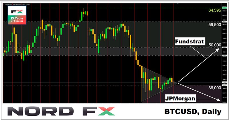 บางทีตำแหน่งของเงินเยนจะได้รับแรงหนุนจากสถิติ GDP ในไตรมาสแรกของปี 2021 ซึ่งจะประกาศโดยคณะรัฐมนตรีของญี่ปุ่นในวันอังคารที่ 8 มิถุนายน ตามการคาดการณ์นั้น แนวโน้มที่ลดลงของ GDP อาจชะลอตัวจาก 1.3% เป็น -1.2% ซึ่งจะชี้ถึงความเป็นไปที่เศรษฐกิจประเทศเริ่มก้าวออกจากภาวะถดถอย - คริปโตเคอเรนซี เรามาเริ่มกันที่มุมมองในแง่ร้ายต่ออนาคต นายนิโคเลาส์ ปานิกิร์ตโซกลู นักยุทธศาสตร์ของบริษัท JPMorgan กล่าวใน Yahoo Finance ว่าเขายังไม่ตัดโอกาสที่ราคาบิทคอยน์จะดิ่งลงต่อ เขากล่าวว่า ความล้มเหลวของบิทคอยน์ที่จะฝ่าผ่านระดับ $60,000 จะนำไปสู่แรงตลาดหมีและการทรุดตัวลงต่อไปโดยอัตโนมัติ ช่วงตลาดทรุดตัวในเดือนพฤษภาคมนี้ส่งผลให้ความต้องการในหมู่นักลงทุนรายสถาบันลดลง ซึ่งทำให้ราคา BTC ไม่สามารถฟื้นตัวจากระดับก่อนหน้าได้ ในมุมมองระยะกลางนี้ เขามั่นใจว่ามูลค่าจากปัจจัยพื้นฐานที่เหมาะสมของบิทคอยน์น่าจะอยู่ในช่วง $24,000- $36,000