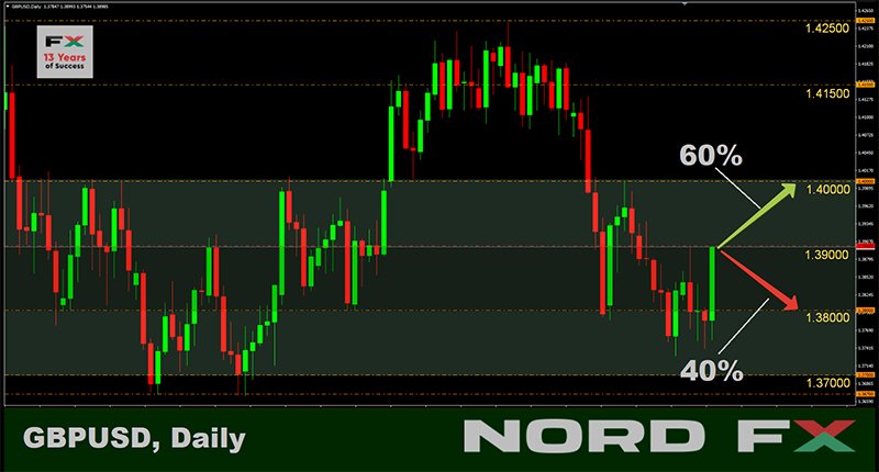 ความผันผวนและการเปลี่ยนแปลงของเทรนด์ทั้งหมดนี้ส่งผลให้ ราคาขยับแทบจะเป็นศูนย์ และคู่ EUR/USD ปิดตลาดรอบสัปดาห์แทบจะที่ระดับเดิมกับที่เริ่มต้นคือ 1.1877 - GBP/USD อัตราการเคลื่อนที่ของเงินปอนด์อังกฤษเทียบกับดอลลาร์เมื่อสัปดาห์ที่แล้วนั้นเดินตามรอยการเคลื่อนที่ของคู่ยูโร คำคาดการณ์ที่ให้ไว้โดยการวิเคราะห์กราฟปรากฏว่าแม่นยำมากที่สุด ซึ่งระบุว่า GBP/USD จะขยับขึ้นไปที่ 1.3870-1.3900 และจากนั้นจะเป็นการเคลื่อนที่ด้านข้างในกรอบ 1.3730-1.3870 ในความเป็นจริงนั้นต่างกันเพียงไม่กี่จุดเท่านั้น และราคาปิดตลาดบริเวณฏรอบด้านบนของช่องที่ 1.3890